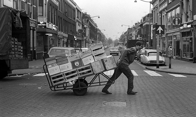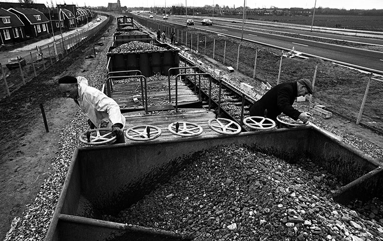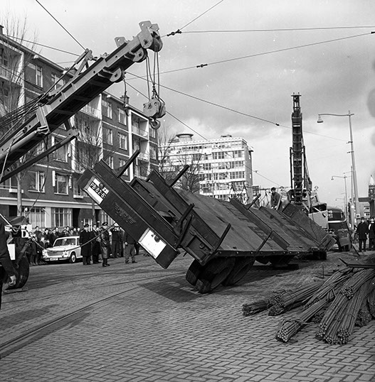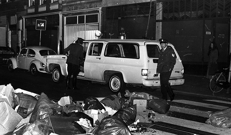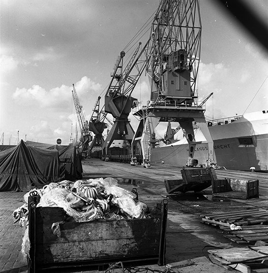 1974 Vuil op rails Middeland Rotterdam afval vuilniszakken