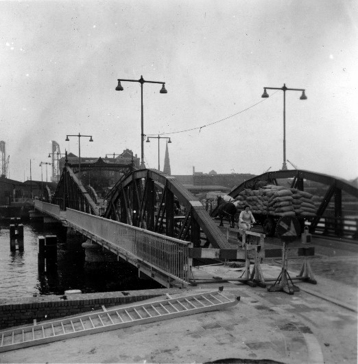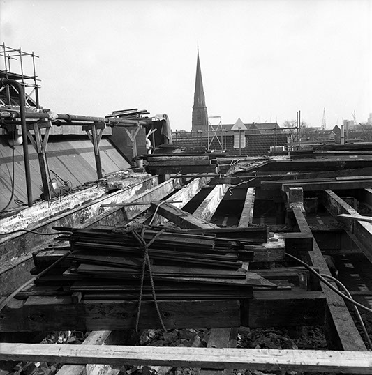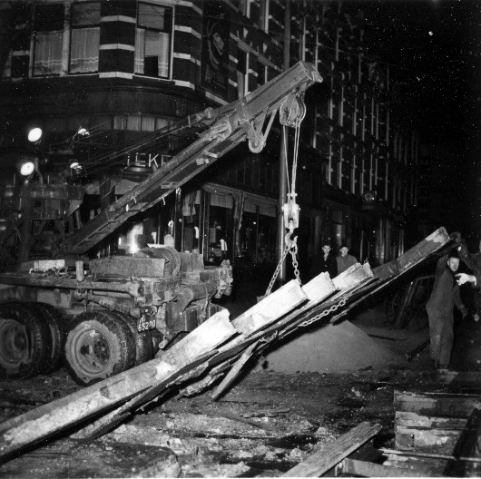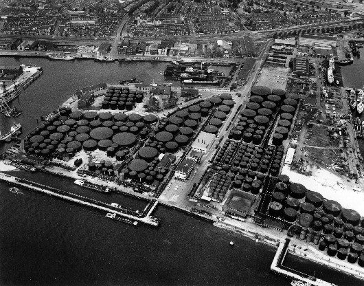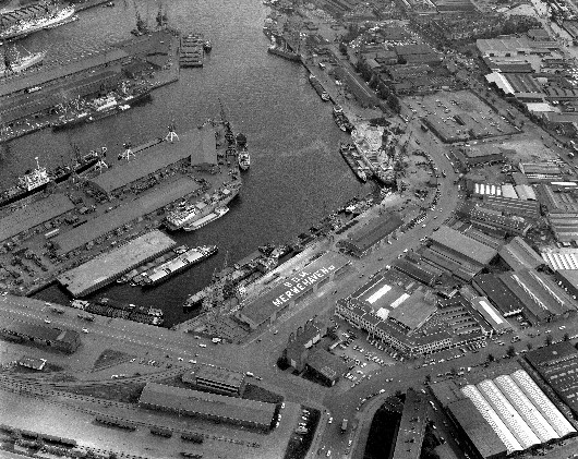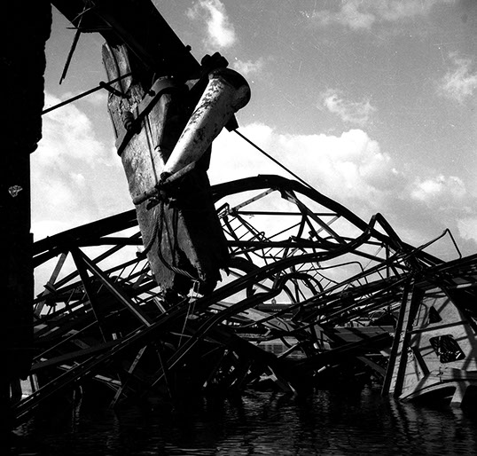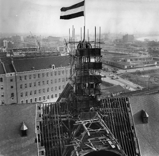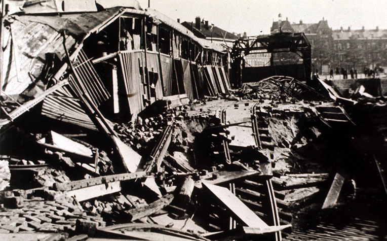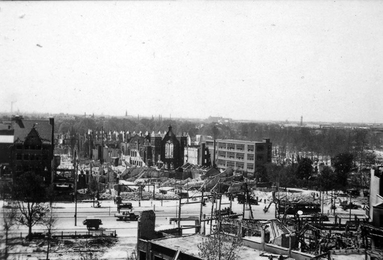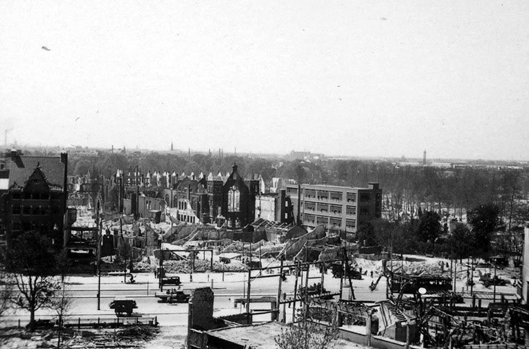 Binnenrotte na bombardement Rotterdam luchtfoto