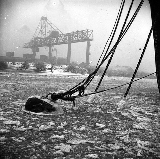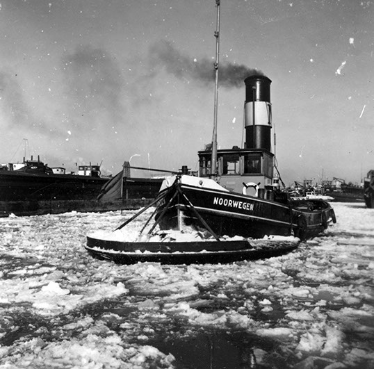 IJsbreken winter ijs op de rivier ijsbreker schip scheepvaart