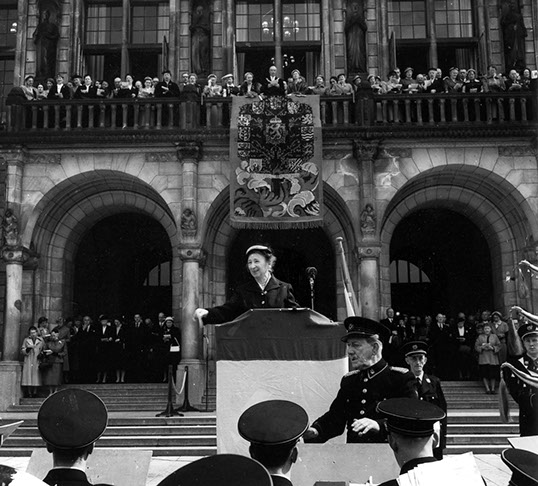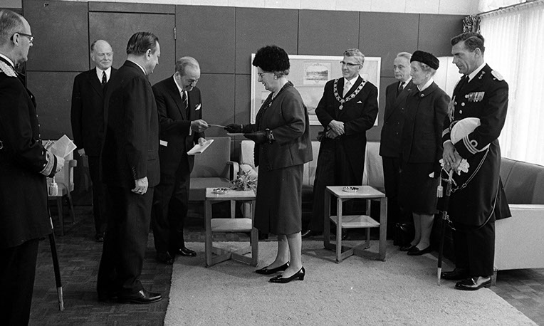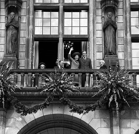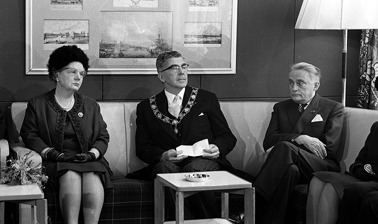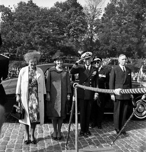 Koning Olaf V Noorwegen Juliana Beatrix en Claus in Rotterdam koninklijk huis koningshuis