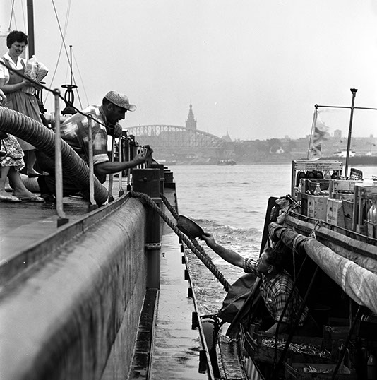 De blokkade van binnenschippers werd tot een toeristische attractie in Rotterdam protest actie