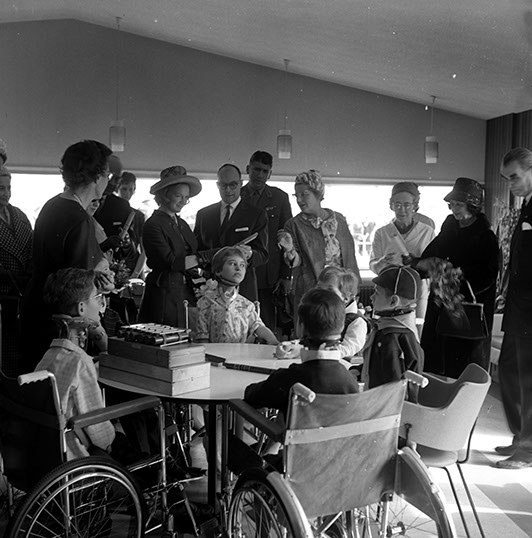 Koningin Juliana De Ark Mexicaans bezoek aan Rotterdam in het kinderziekenhuis De Ark 1963