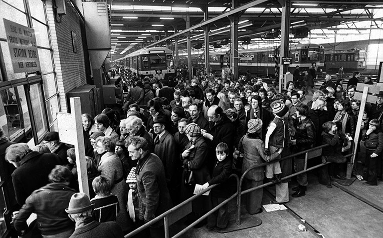 Rotterdam Beurs metro overweldigende belangstelling voor open metro dag mensen dranghekken openbaar vervoer drukte