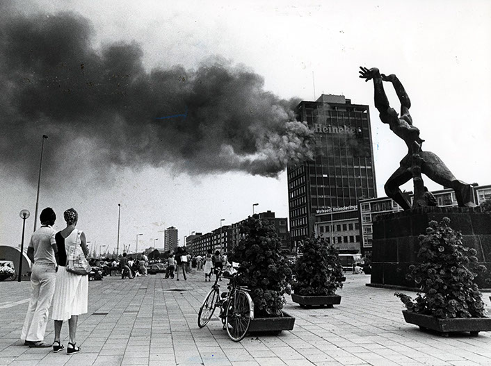Rotterdam Schiedamsedijk Heineken kantoor brand Leuvehaven flat Zadkine standbeeld