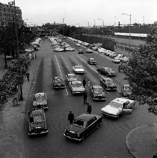 ~Wachtende taxis zijkant Centraal Station Rotterdam treinstation taxi vervoer