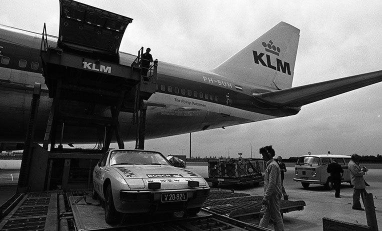 Porsche in vliegtuig KLM Schiphol luchtvaart transport