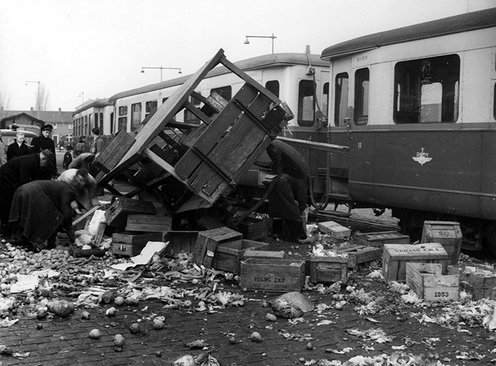 1974 Vuil op rails Middeland Rotterdam afval vuilniszakken