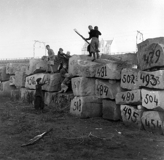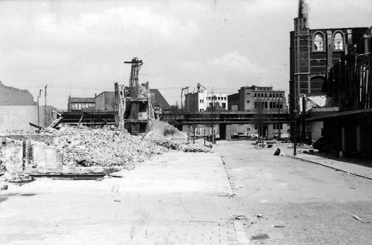 Binnenrotte na bombardement Rotterdam luchtfoto