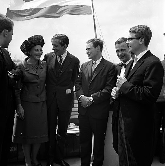 Koning Olaf V Noorwegen Juliana Beatrix en Claus in Rotterdam koninklijk huis koningshuis